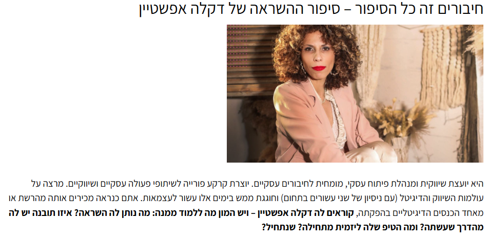 "כך בנתה דקלה אפשטין את הקריירה שלה על חיבורים אנושיים"