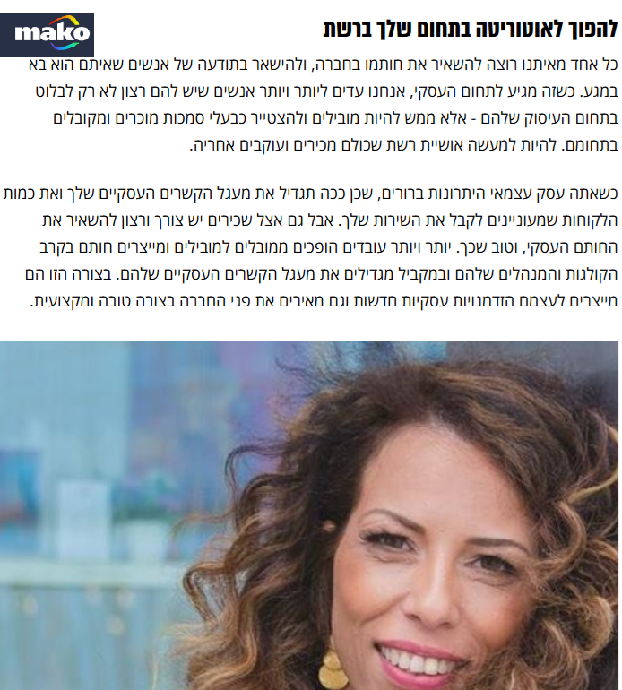 כך תהפכו לאושיות רשת במקצוע שלכם – גם אם אתם שכירים – מתוך כתבה שפרסמו עלי ב – MAKO